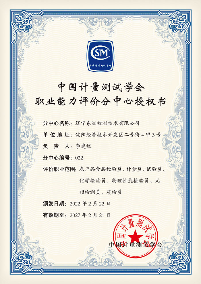中國計(jì)量測試學(xué)會職業(yè)能力評價分中心授權(quán)書