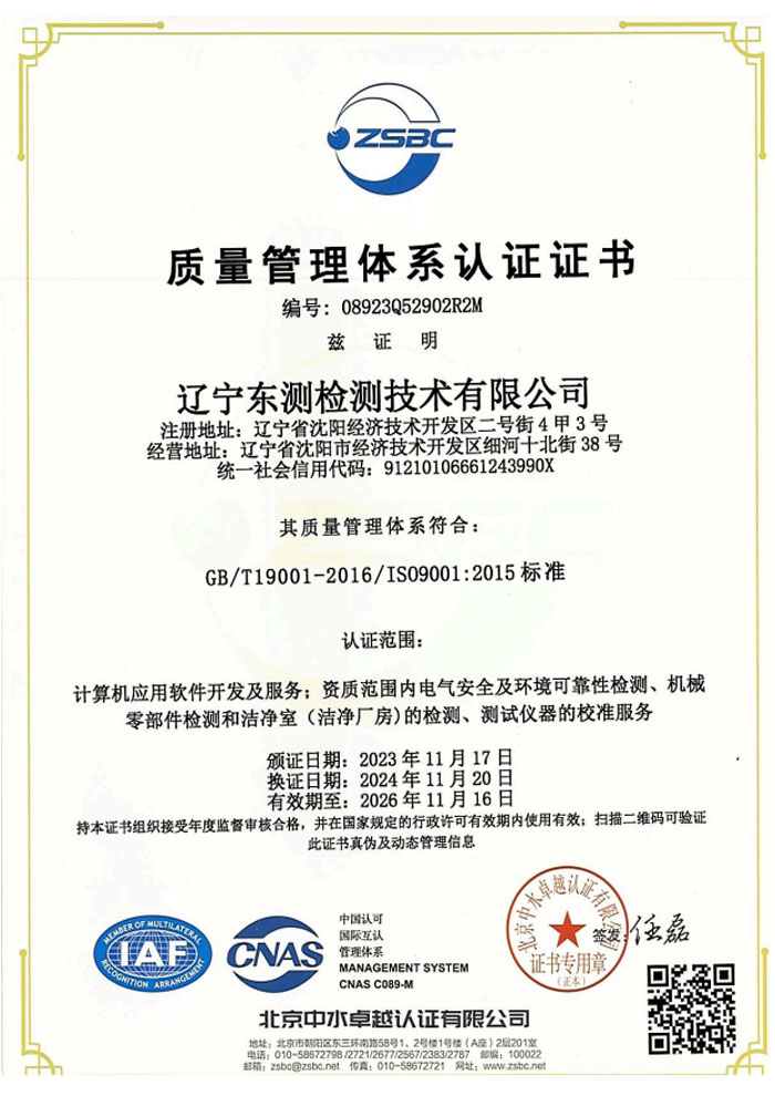 遼寧東測檢測技術(shù)有限公司成立于2007年6月21日,專注于為客戶提供計(jì)量、檢測以及技術(shù)咨詢與培訓(xùn)的第三方計(jì)量檢測機(jī)構(gòu)。遼寧東測檢測技術(shù)有限公司通過了中國合格評定國家認(rèn)可委員會認(rèn)可(CNAS),獲得檢驗(yàn)檢測機(jī)構(gòu)資質(zhì)認(rèn)定(CMA),憑借著高效的服務(wù)網(wǎng)絡(luò)、雄厚的技術(shù)實(shí)力以及全面的業(yè)務(wù)范圍,本著“科學(xué)、公正、準(zhǔn)確、真誠”的質(zhì)量方針,為社會提供優(yōu)質(zhì)計(jì)量檢測服務(wù),打造國內(nèi)具有價值的計(jì)量技術(shù)機(jī)構(gòu)。